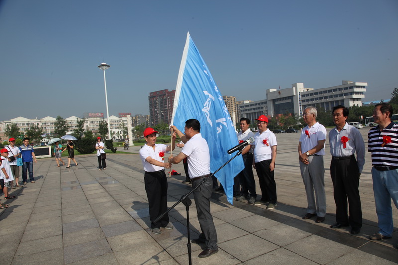 蒋有泉副会长向辽宁楹联家协会秘书长郑元通授营旗