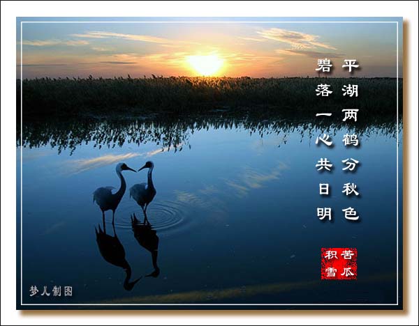 出句:平湖两鹤分秋色 [苦瓜]