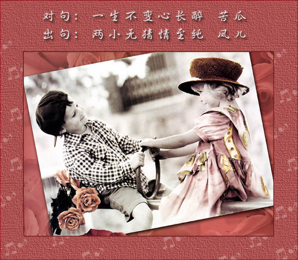 对句:一生不变心长醉 [苦瓜] 出句:两小无猜情至纯 [凤儿]