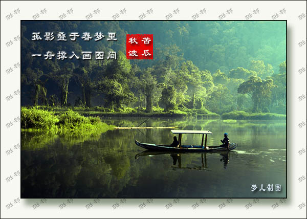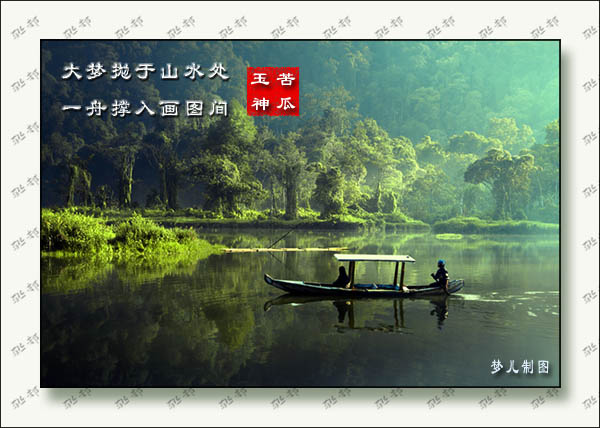 看图出句:一舟撑入画图间 |