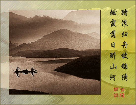 图二: 看动人秋色千重,自成今古, 需著我扁舟一叶,以慰湖山。