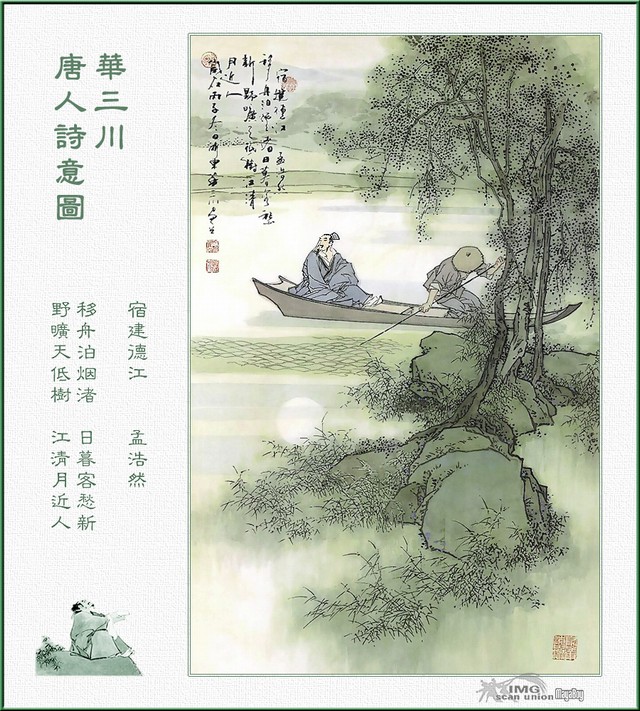 宿建德江——孟浩然 移舟泊烟渚,日暮客愁新。 野旷天低树,江清月近人。