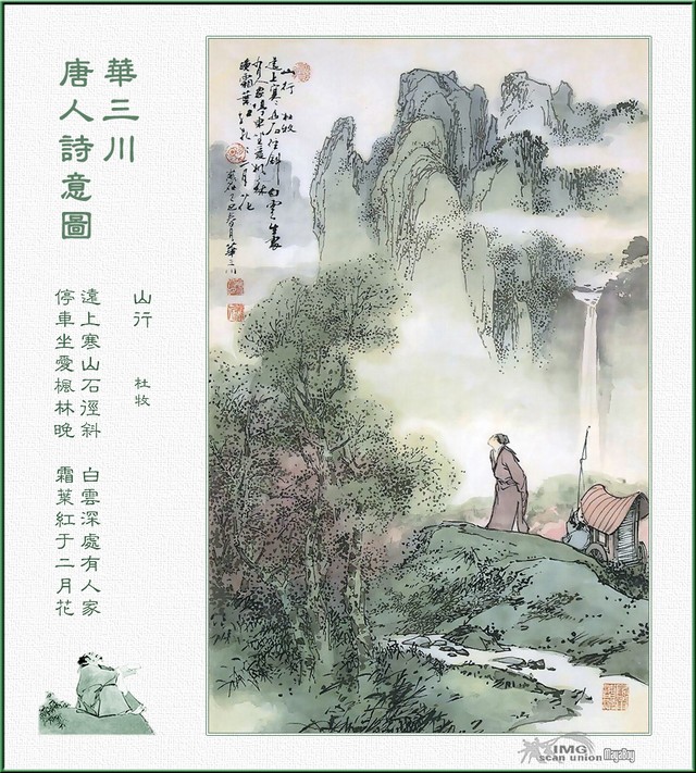 山行——杜牧 远上寒山石径斜, 白云生处有人家。 停车坐爱枫林晚, 霜叶红于二月花。